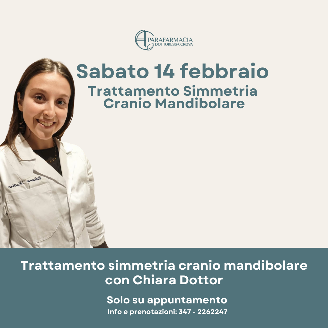 Parafarmacia Crova propone una giornata dedicata ai trattamenti cranio-mandibolari con Chiara Dottor, pensata per chi desidera ridurre tensioni e fastidi dell’area mandibolare e cervicale e migliorare l’equilibrio funzionale ed estetico del viso.